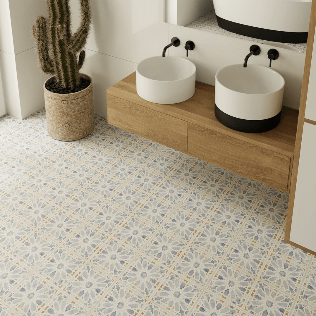 Płytka gresowa Patchwork Salerno Alhambra wyróżnia się piękną, elegancką, matową powierzchnią i ponadczasowym designem. Płytka pięknie komponuje się z innymi modelami, tworząc spójną i stylową aranżację.