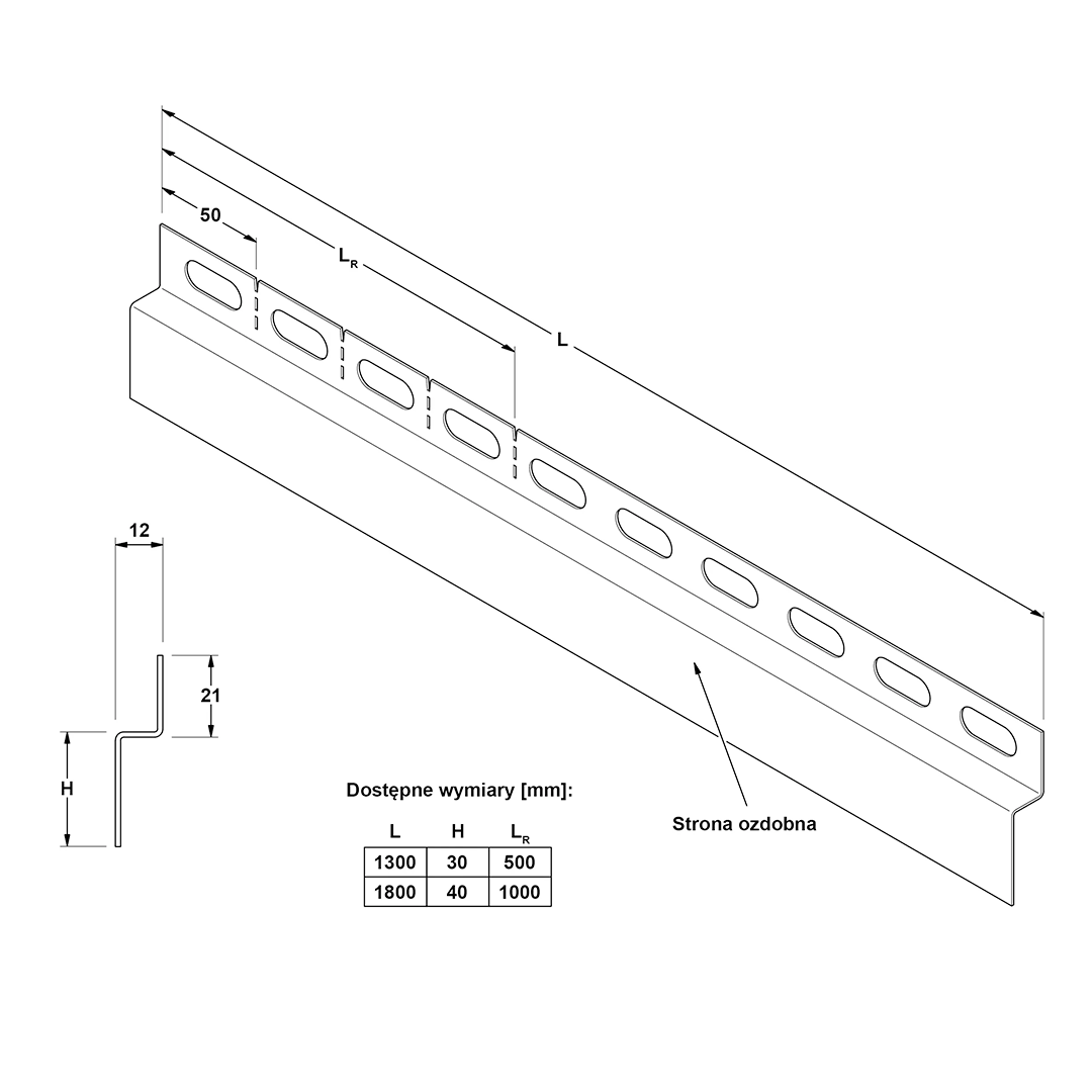 Listwa czołowa długości 130 cm jest kompatybilna z listwami spadkowymi 120 cm