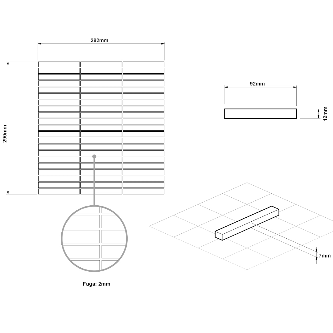 • mozaika kalibrowana – plastry przy brzegach posiadają zaokrąglone krawędzie oraz są cieńsze, dzięki czemu znacznie lepiej prezentują się po procesie fugowania,
