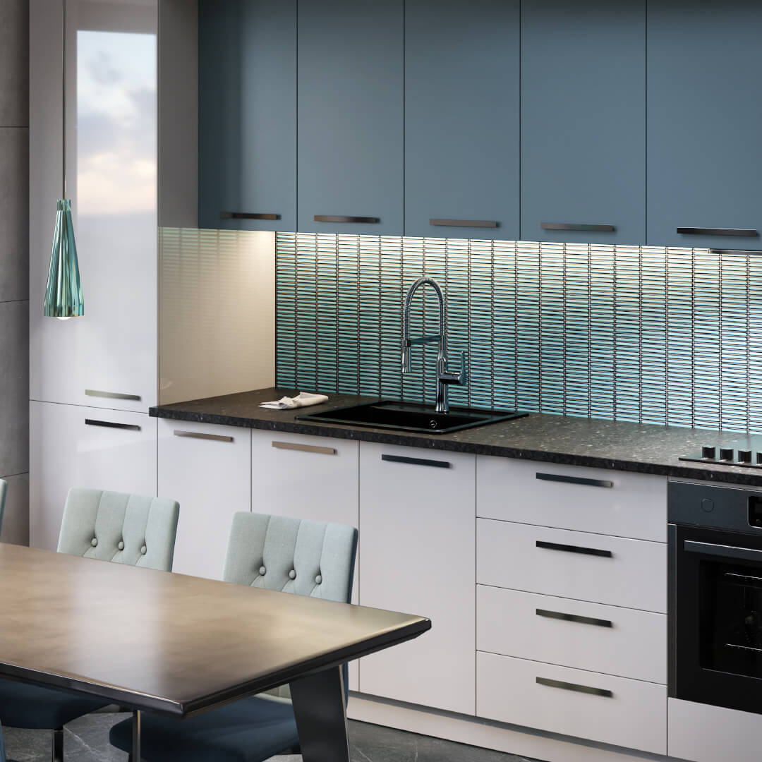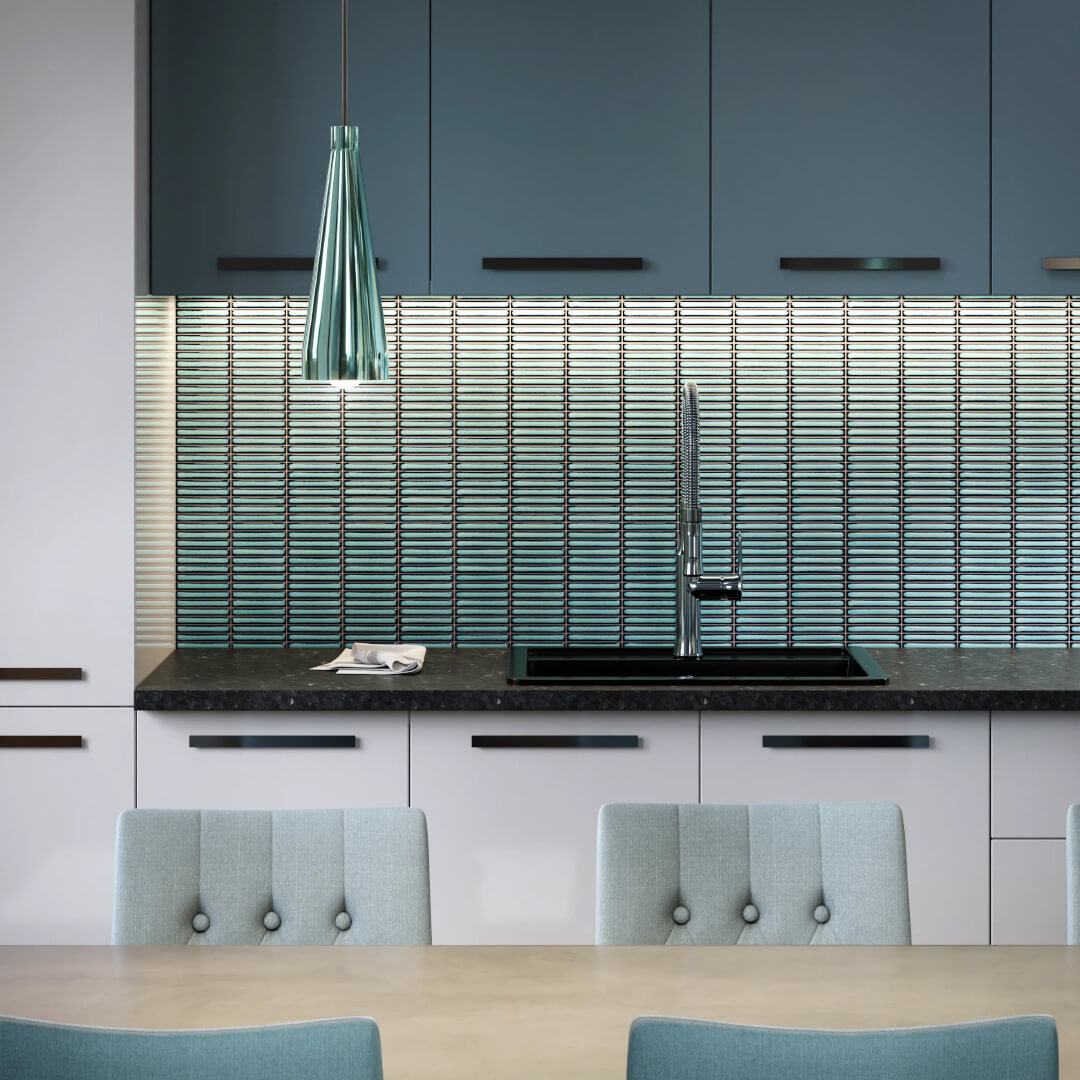 Mozaika posiada połyskujące wykończenie, jest odporna na zabrudzenia oraz cechuje się wysoką wytrzymałością. Prezentowany produkt doskonale  odnajdzie się w pomieszczeniach utrzymanych w stylu modernistycznym oraz marynistycznym.