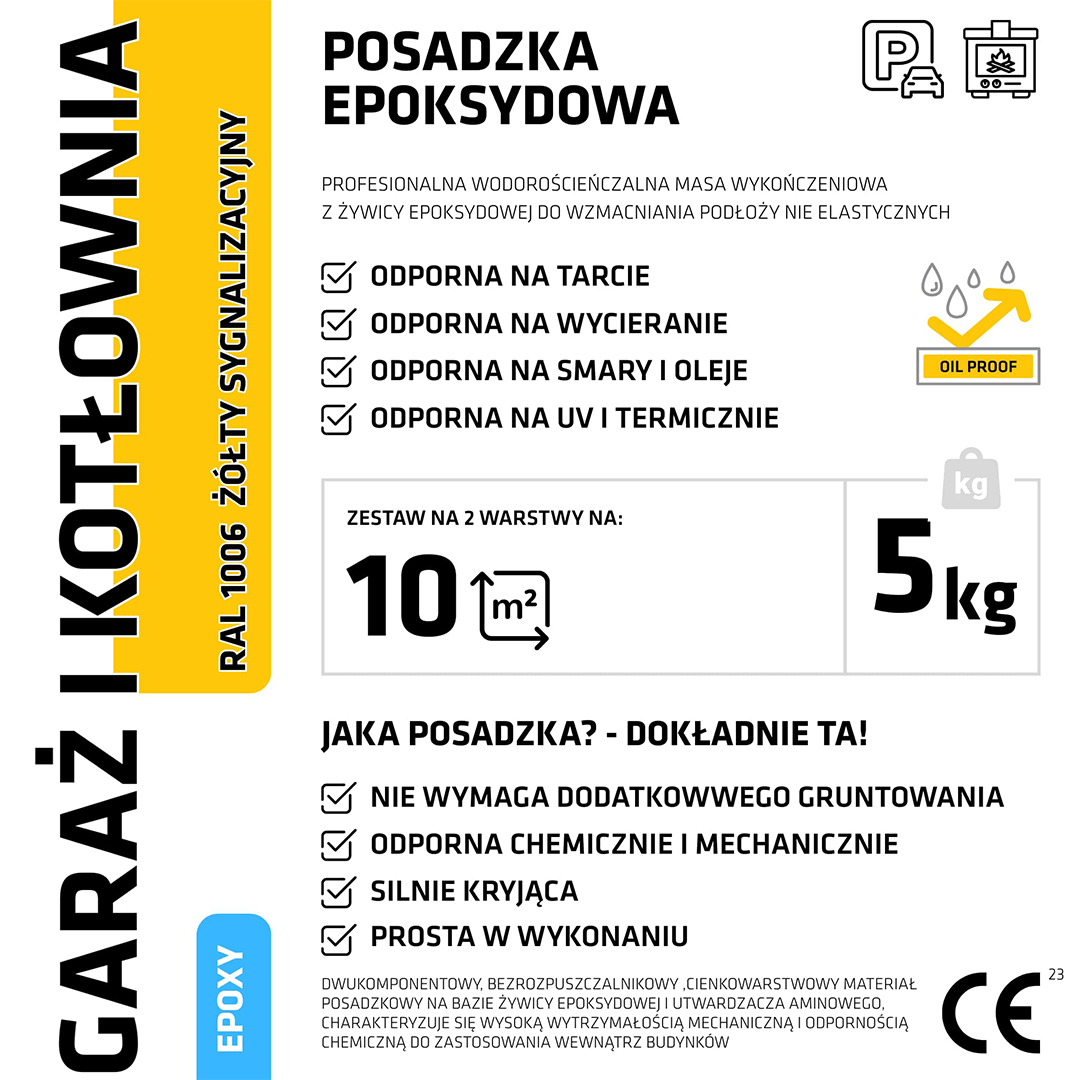 Prezentowany produkt to dwuskładnikowa żywica epoksydowa, która przeznaczona jest do wykonywania cienkowarstwowych posadzek znajdujących się wewnątrz pomieszczeń oraz do oznakowania linii oraz stref bezpieczeństwa w przestrzeniach przemysłowych. Polecana jest do kotłowni, korytarzy, garaży, piwnic, pomieszczeń technicznych, magazynów oraz hal produkcyjnych.