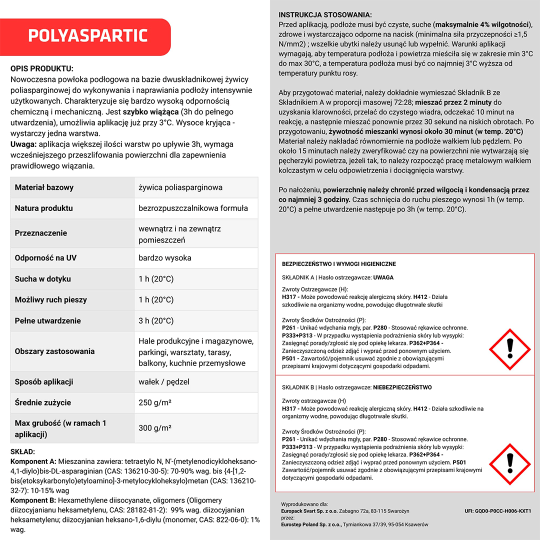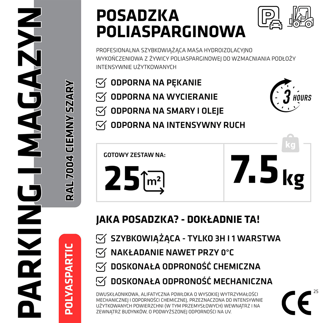 Prezentowany produkt wykonany został na bazie dwuskładnikowej żywicy poliasparginowej. Świetnie sprawdzi się do wykonania podłoży intensywnie użytkowanych, np. w magazynach lub na parkingach.