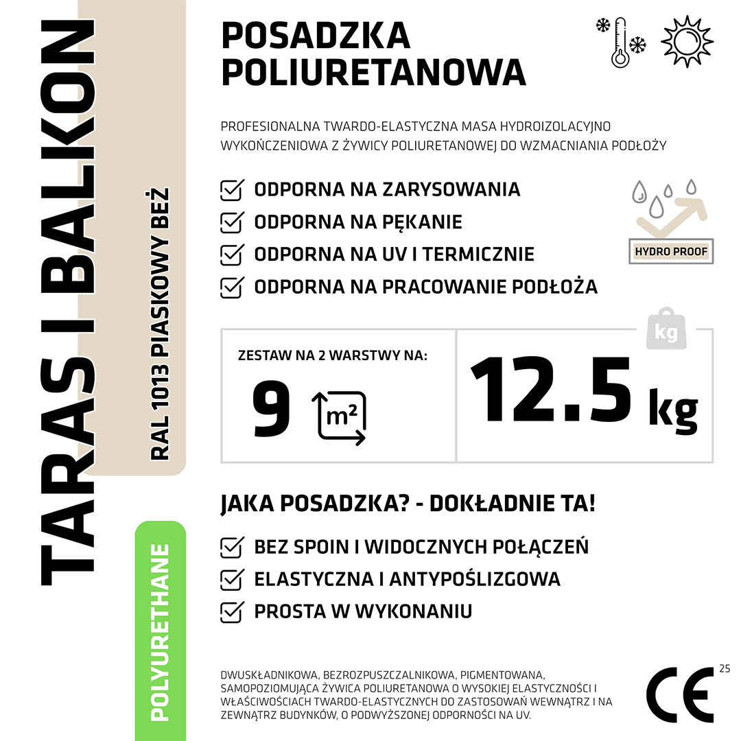 Dwukomponentowa, bezrozpuszczalnikowa żywica poliuretanowa charakteryzująca się bardzo wysoką elastycznością oraz odpornością mechaniczną. Produkt sprawdzi się do tworzenia bezspoinowych posadzek zarówno wewnątrz, jak również na zewnątrz budynków.